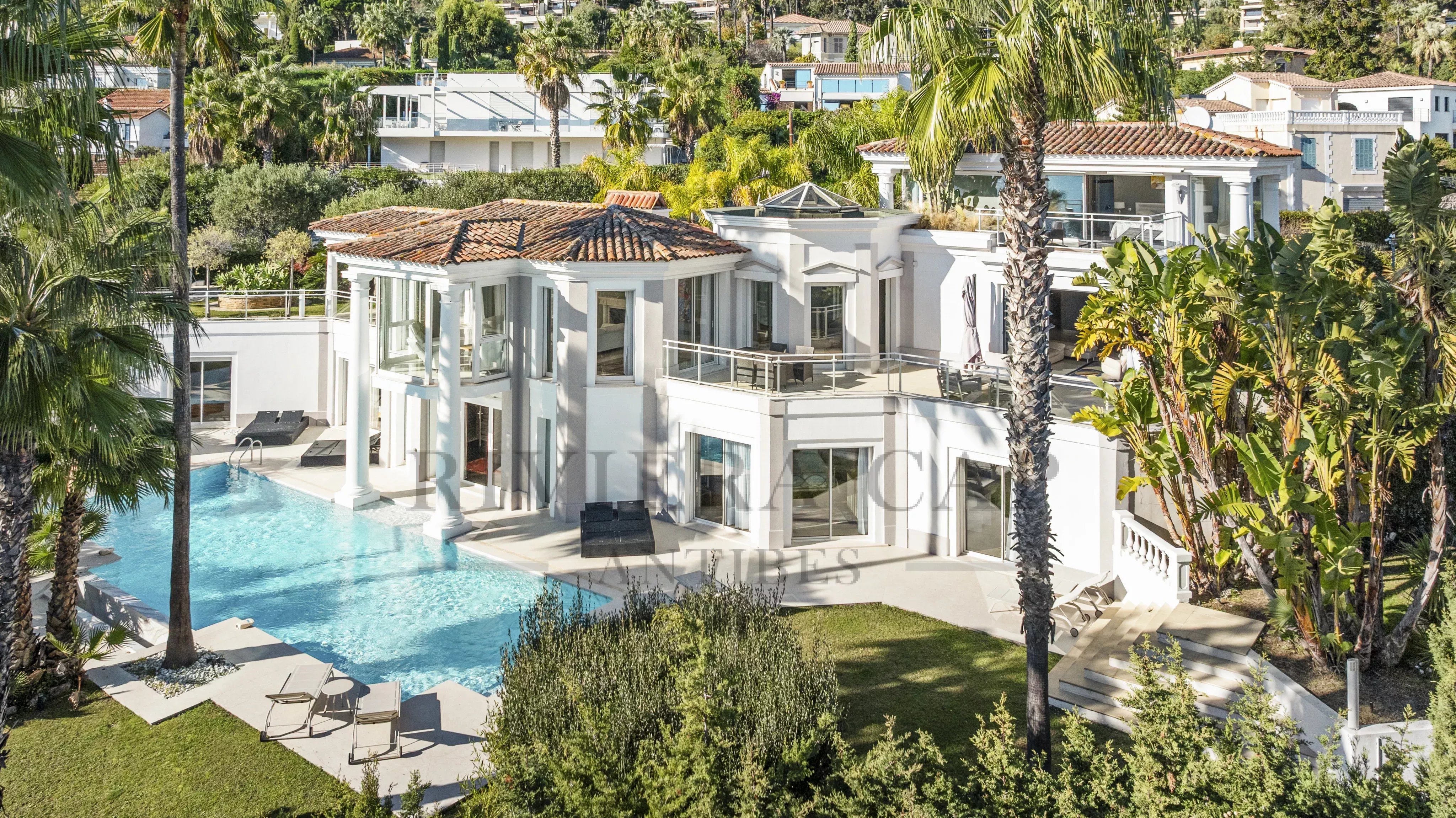 Vue mer imprenable du Cap Antibes à l'Estérel / Exposition plein Sud / Piscine chauffée / 6 suites / 3 salons / 1 salle à manger / 1 Studio de service indépendant / 2 garages + Parking pour 5 voitures